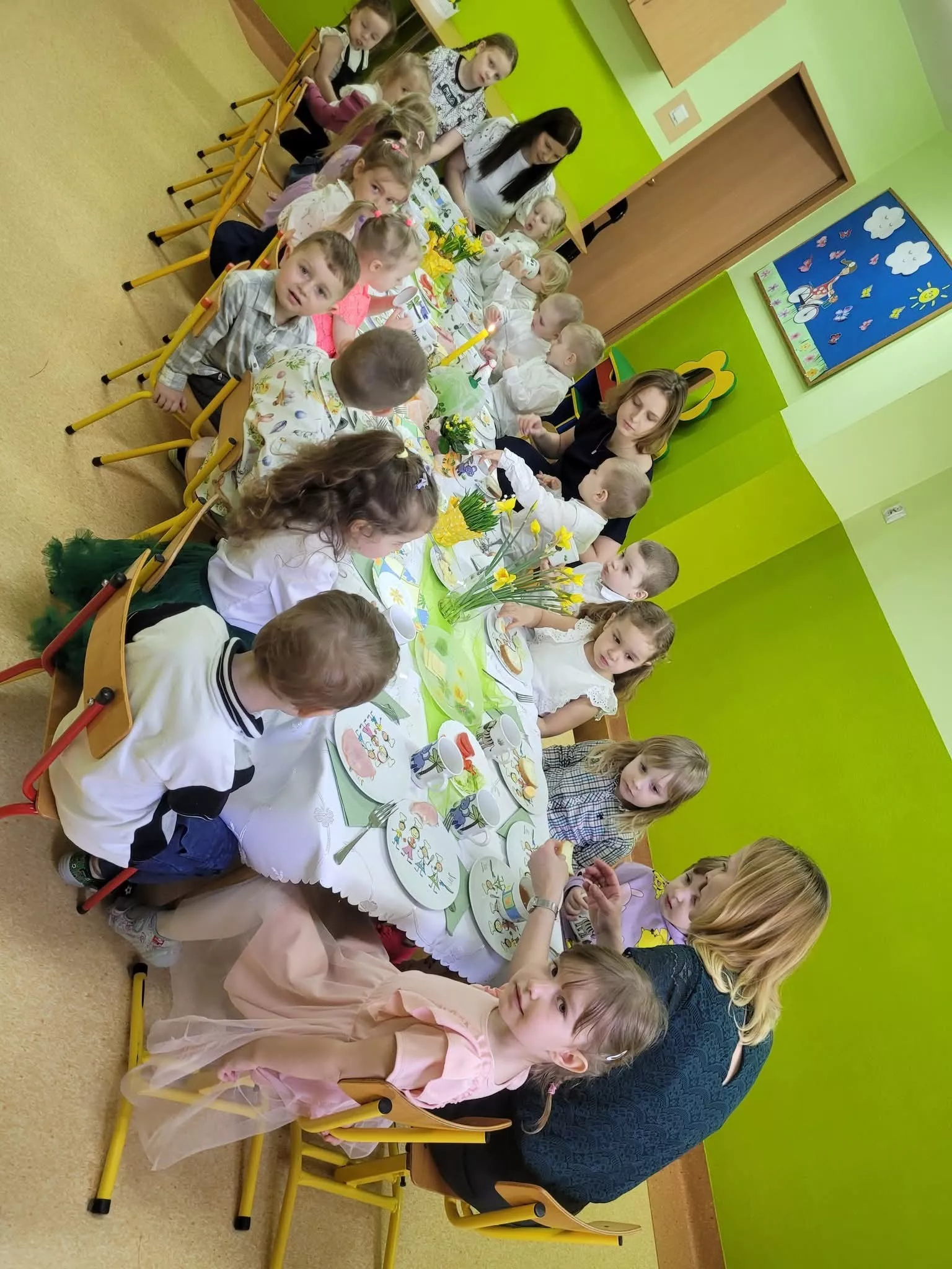17 kwietnia w naszym przedszkolu odbyło się uroczyste Śniadanie Wielkanocne, które wprowadziło dzieci w atmosferę nadchodzących Świąt Wielkanocnych. Przedszkolaki wspólnie z wychowawcami zasiadły do pięknie udekorowanego stołu, na którym nie zabrakło tradycyjnych potraw: jajek, pieczywa, wędlin, a także kolorowych warzyw. Podczas spotkania dzieci poznawały wielkanocne zwyczaje i symbole. Rozmawialiśmy o tradycji dzielenia się jajkiem, składaliśmy sobie życzenia, a wspólna modlitwa i radosne rozmowy sprawiły, że ten dzień był naprawdę wyjątkowy. Szczególną uwagę poświęciliśmy Barankowi Wielkanocnemu, który jest najważniejszym symbolem Wielkanocy – znakiem zwycięstwa Chrystusa, zwycięstwa życia nad śmiercią, nadziei i odkupienia.