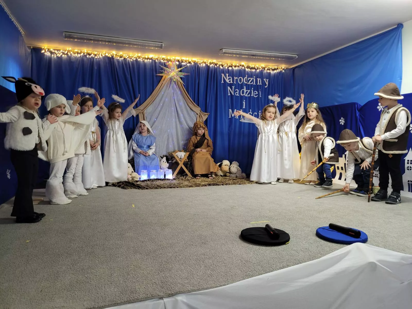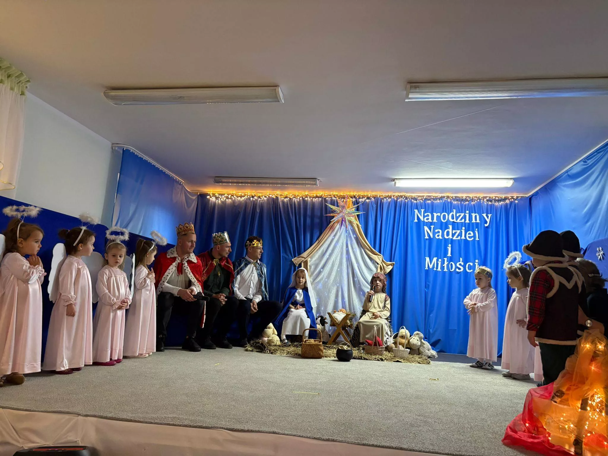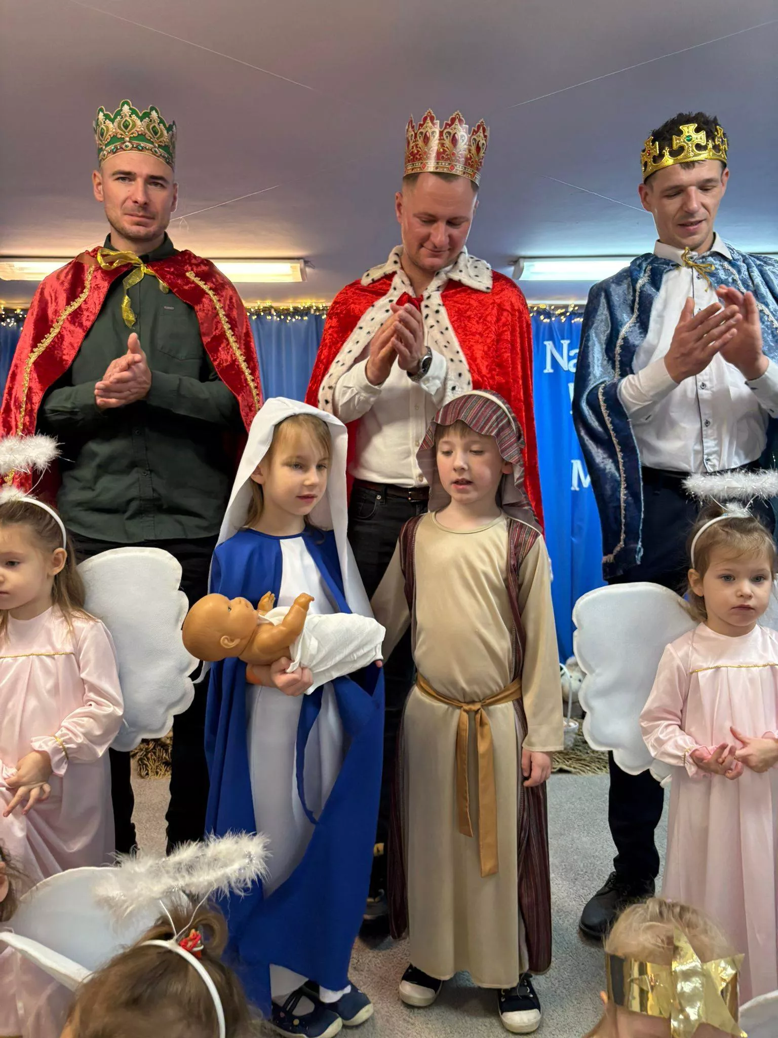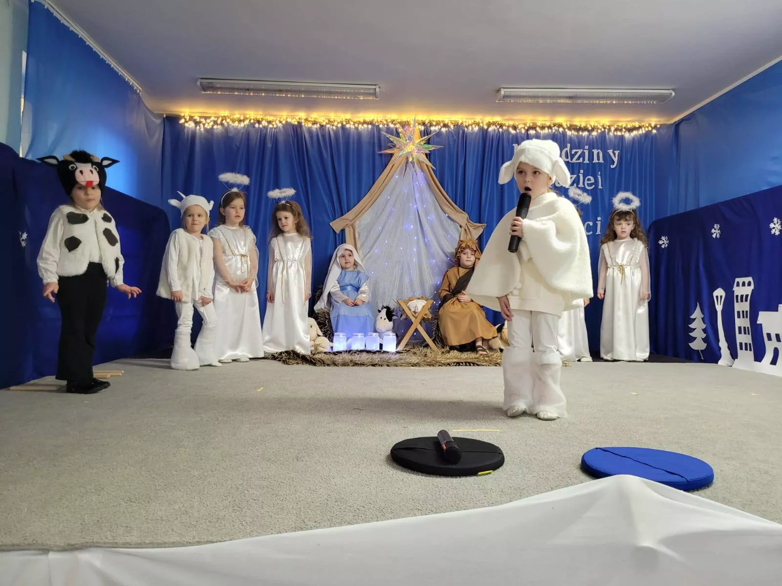 Przedszkolaki, wcielając się w role Maryi , św. Józefa , Aniołów , Pasterzy i Trzech Króli , pięknie recytowały wiersze oraz śpiewały piosenki i kolędy , dając świadectwo wiary i miłości do Zbawiciela.