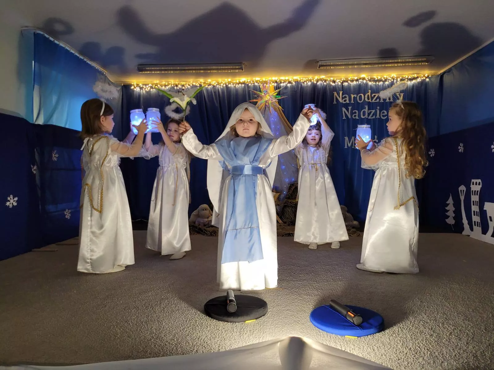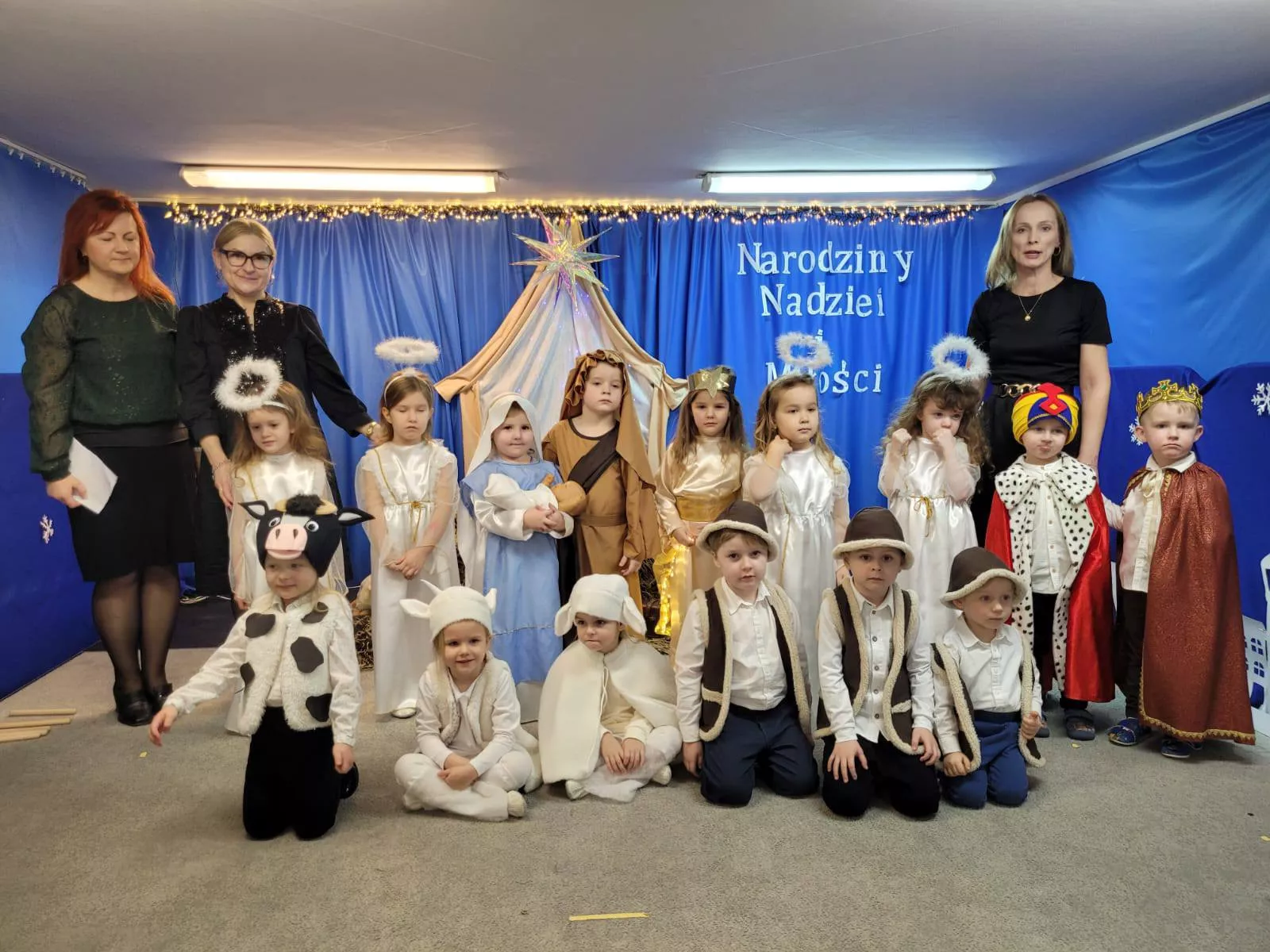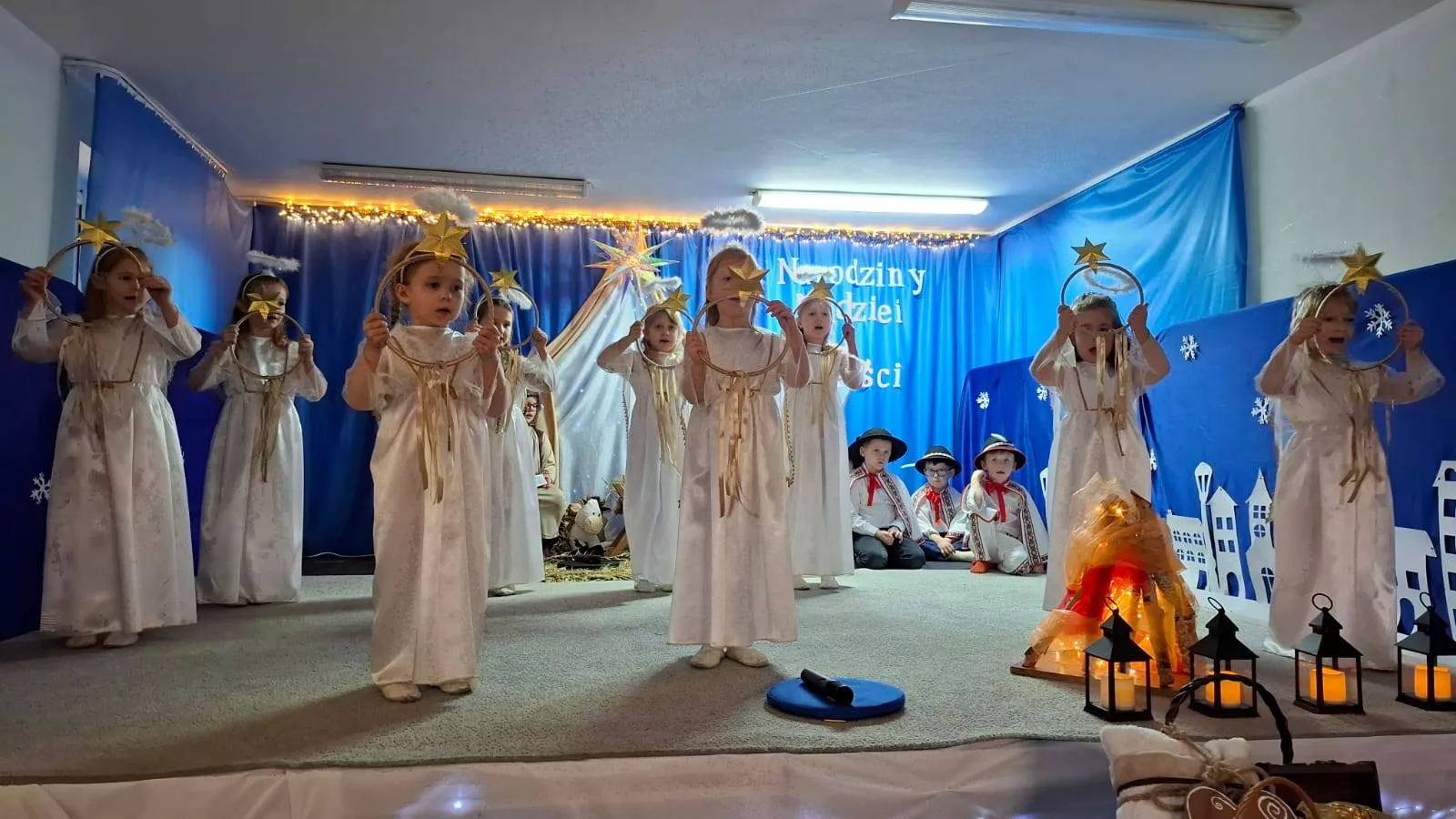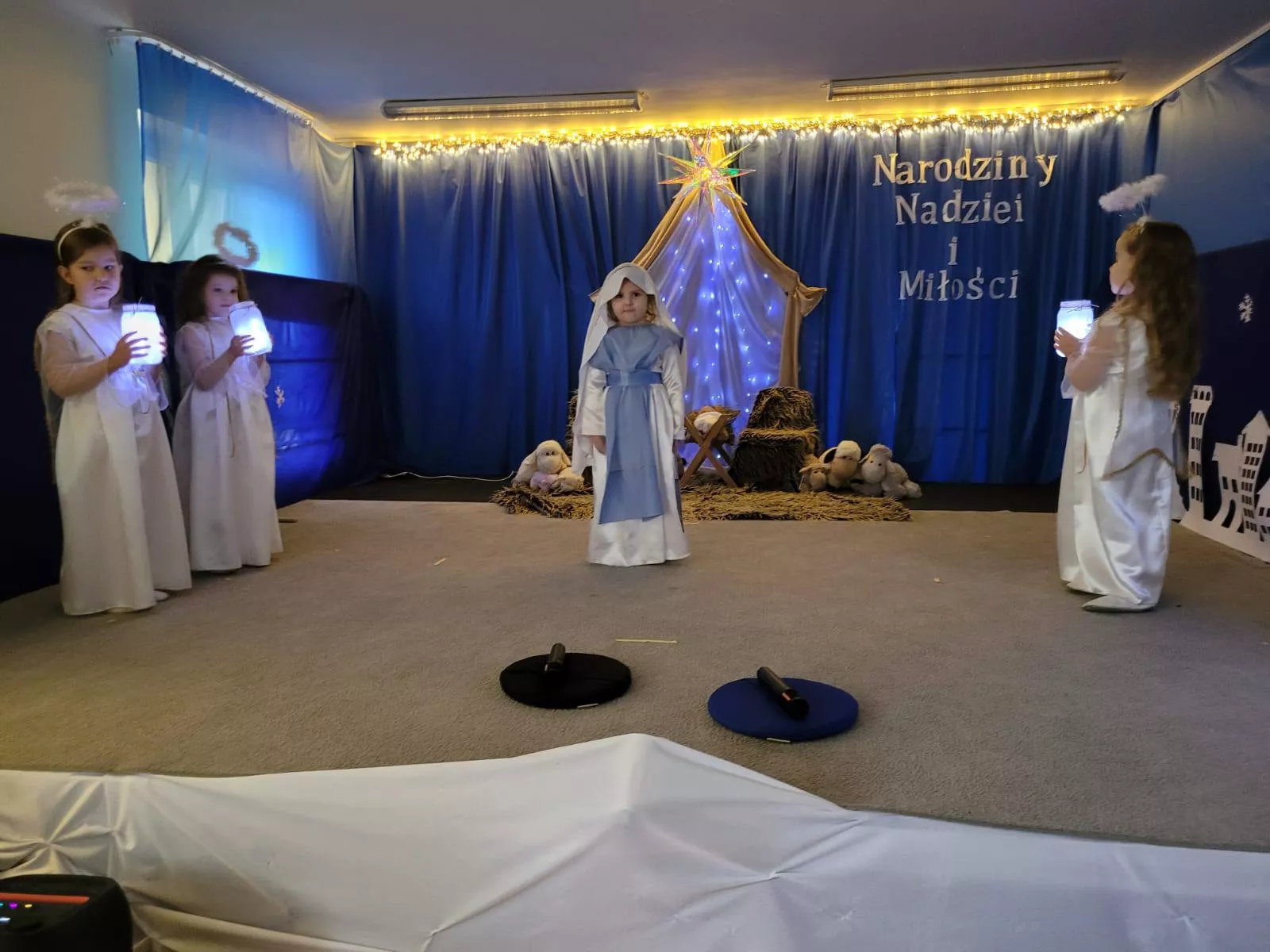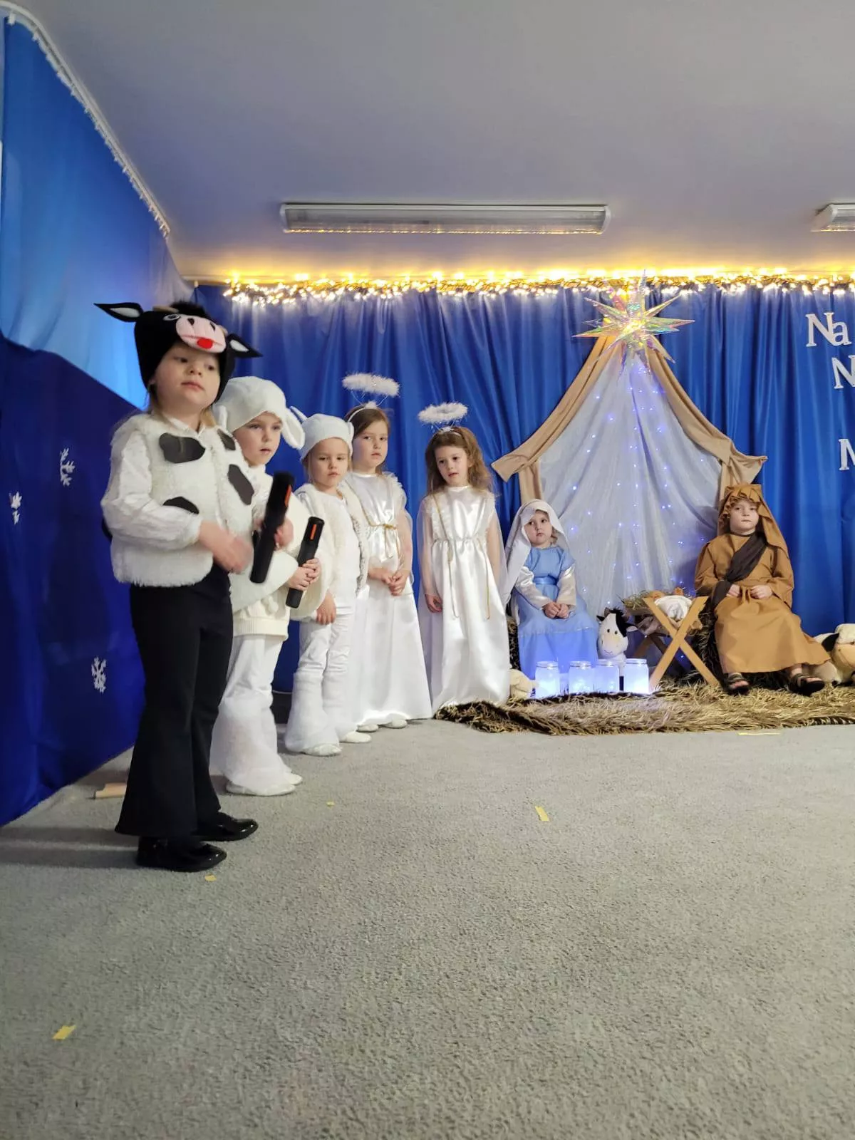 Przedszkolaki, wcielając się w role Maryi , św. Józefa , Aniołów , Pasterzy i Trzech Króli , pięknie recytowały wiersze oraz śpiewały piosenki i kolędy , dając świadectwo wiary i miłości do Zbawiciela.