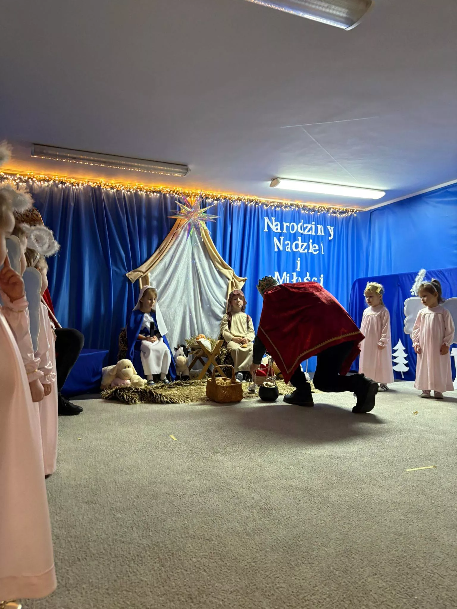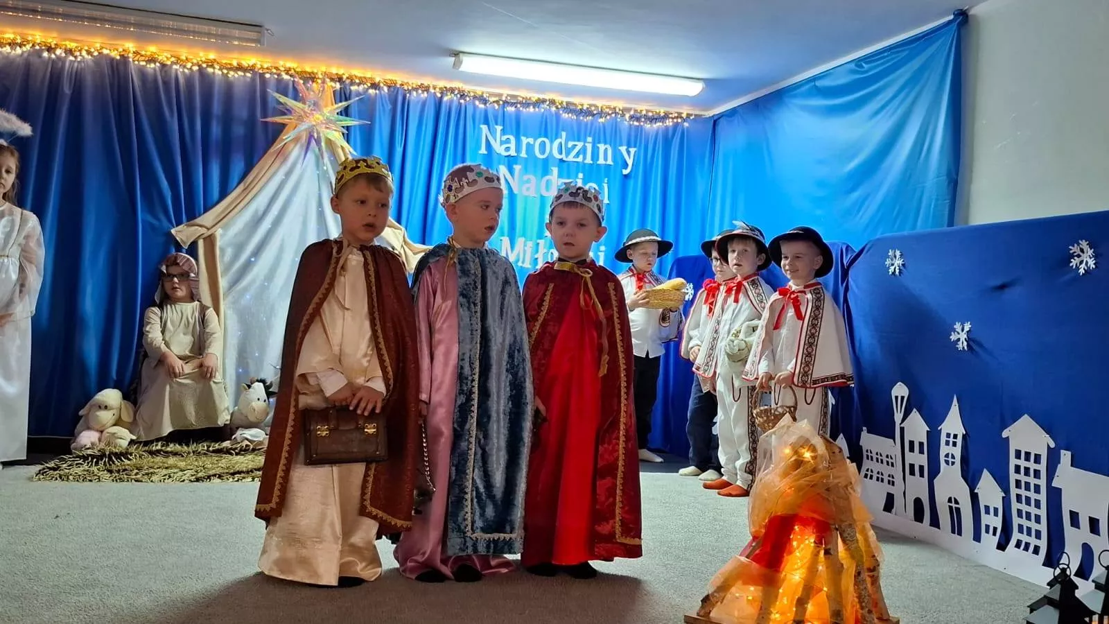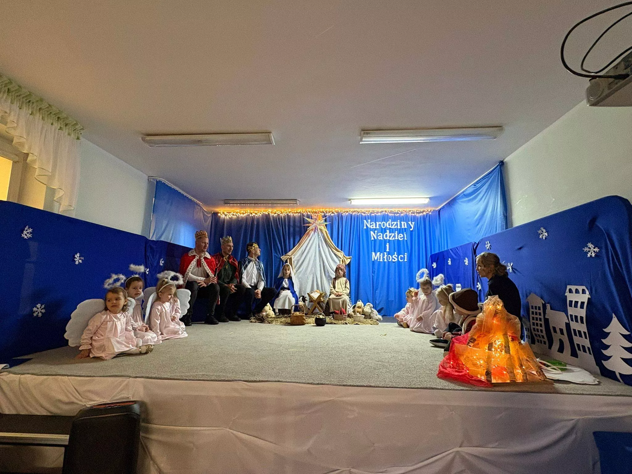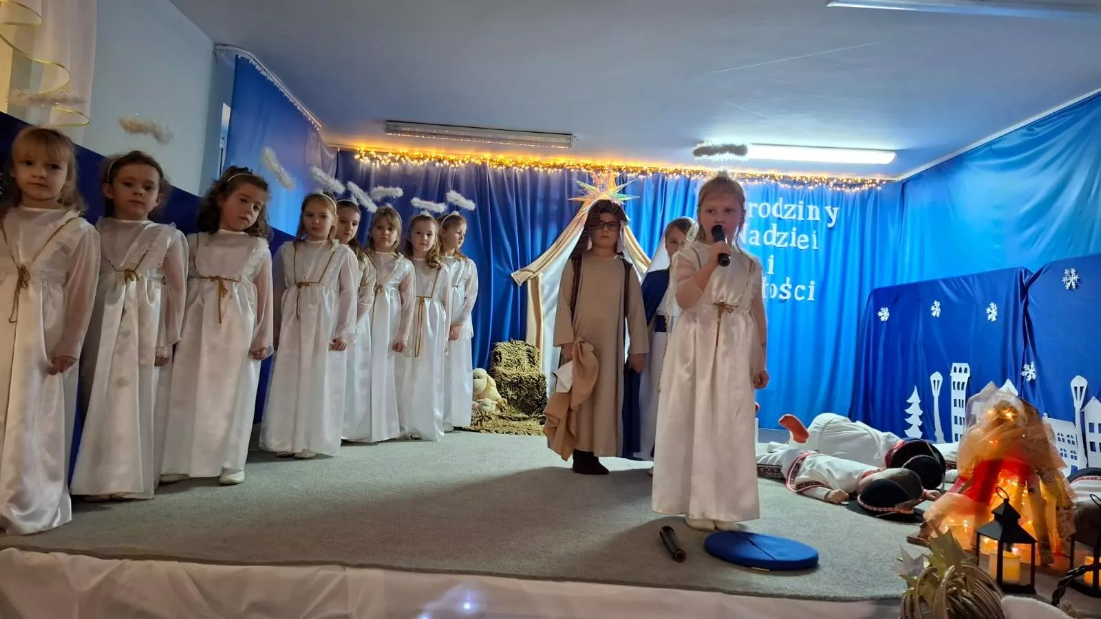 Przedszkolaki, wcielając się w role Maryi , św. Józefa , Aniołów , Pasterzy i Trzech Króli , pięknie recytowały wiersze oraz śpiewały piosenki i kolędy , dając świadectwo wiary i miłości do Zbawiciela.