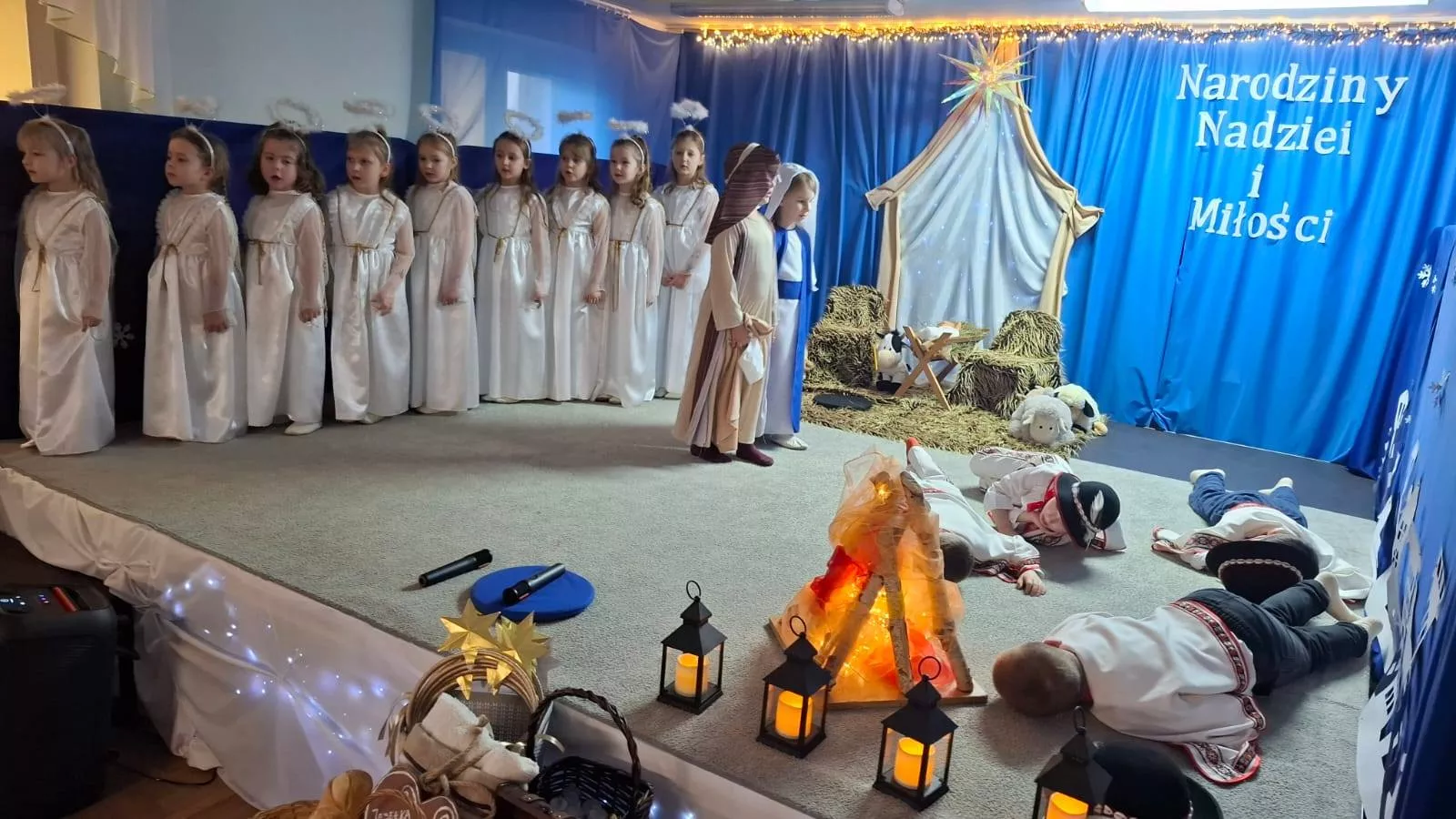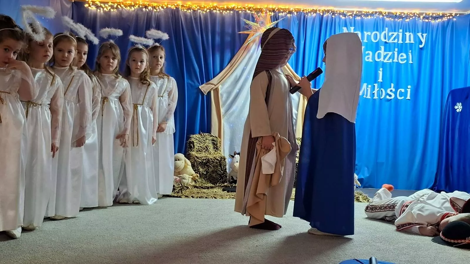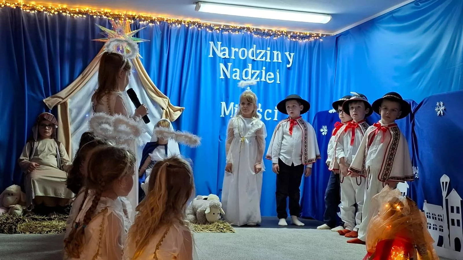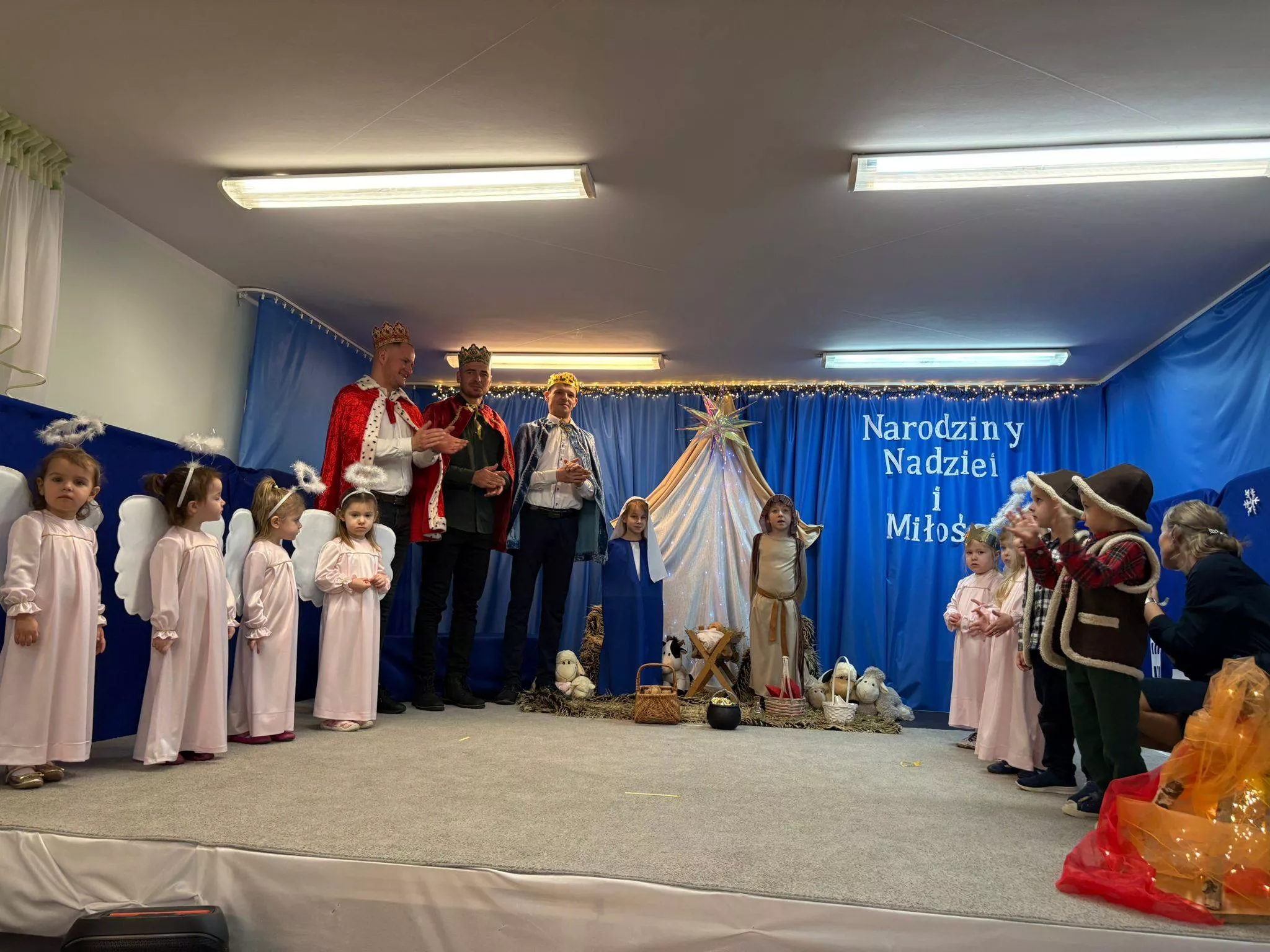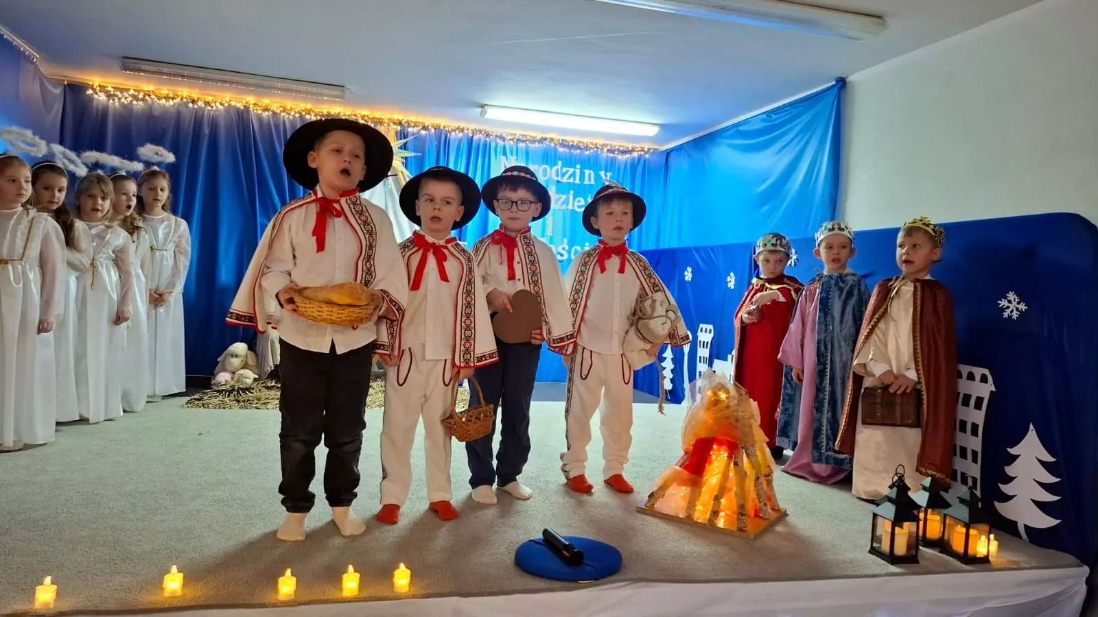 Przedszkolaki, wcielając się w role Maryi , św. Józefa , Aniołów , Pasterzy i Trzech Króli , pięknie recytowały wiersze oraz śpiewały piosenki i kolędy , dając świadectwo wiary i miłości do Zbawiciela.