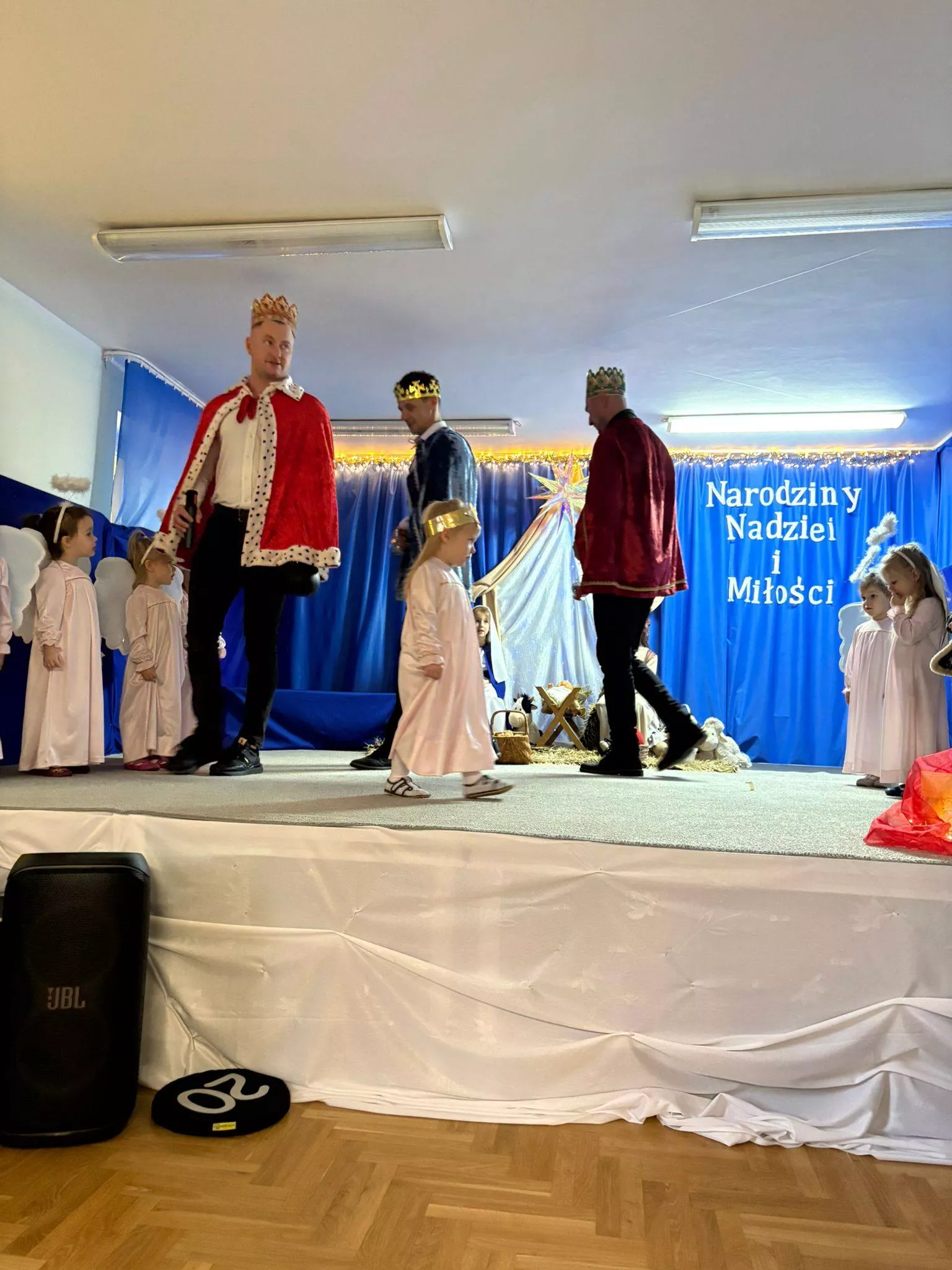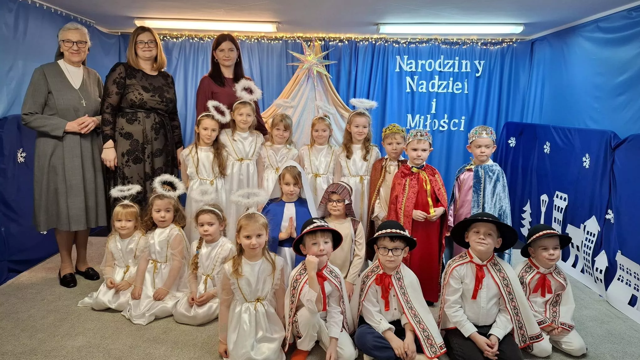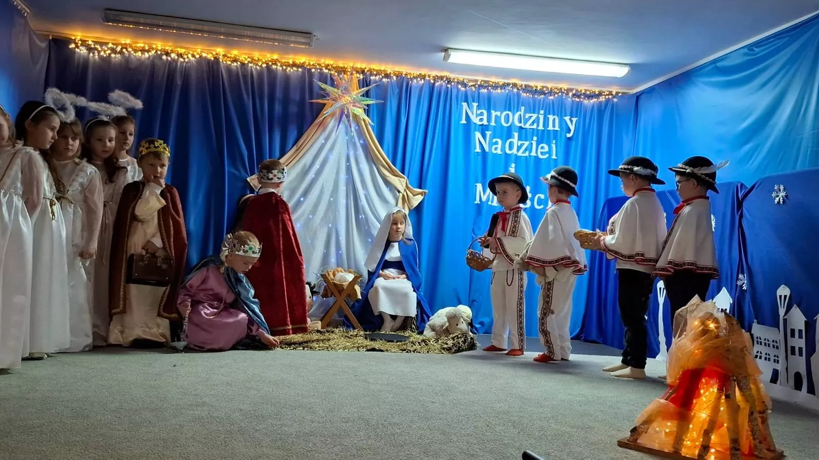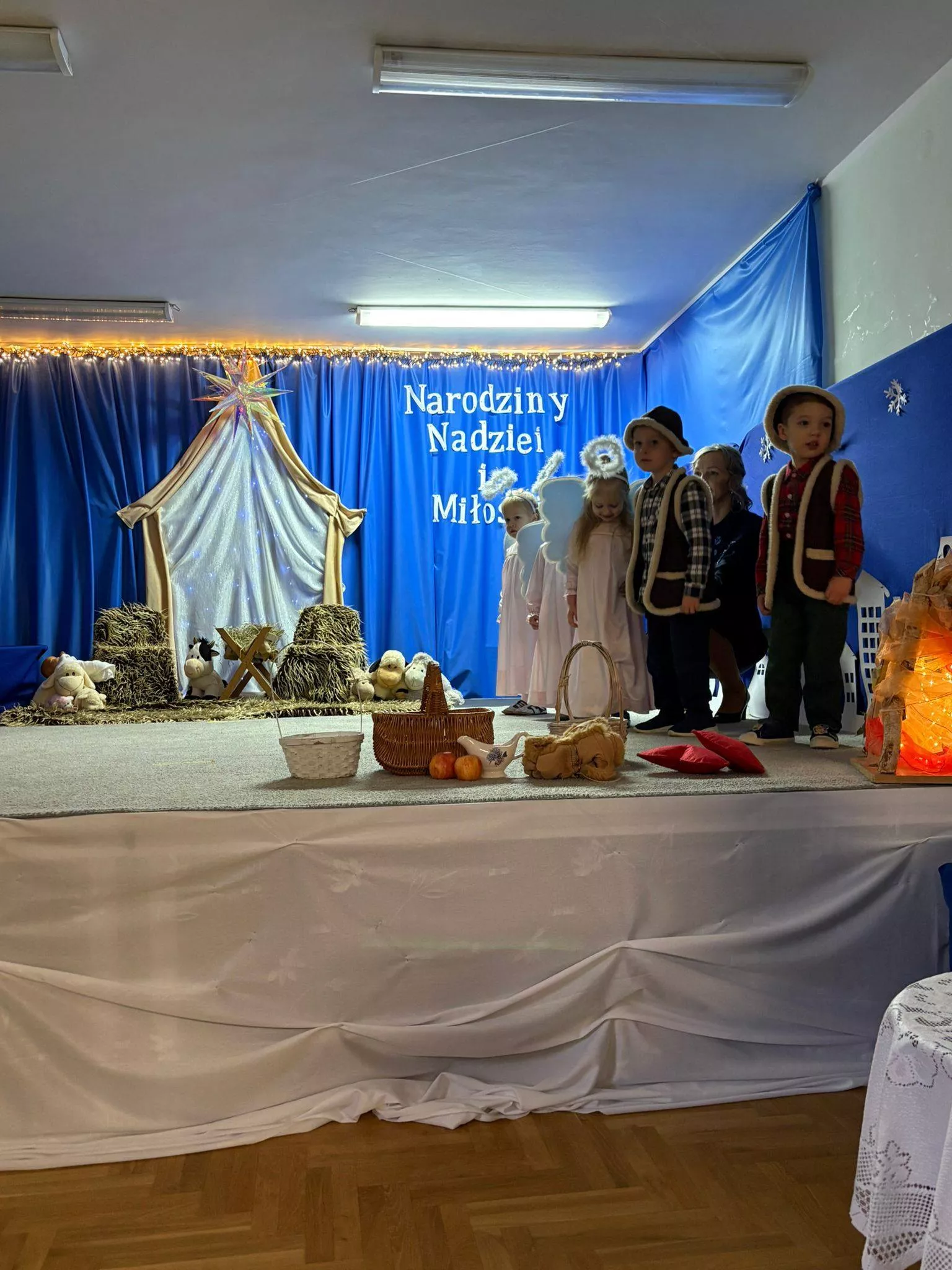 Przedszkolaki, wcielając się w role Maryi , św. Józefa , Aniołów , Pasterzy i Trzech Króli , pięknie recytowały wiersze oraz śpiewały piosenki i kolędy , dając świadectwo wiary i miłości do Zbawiciela.