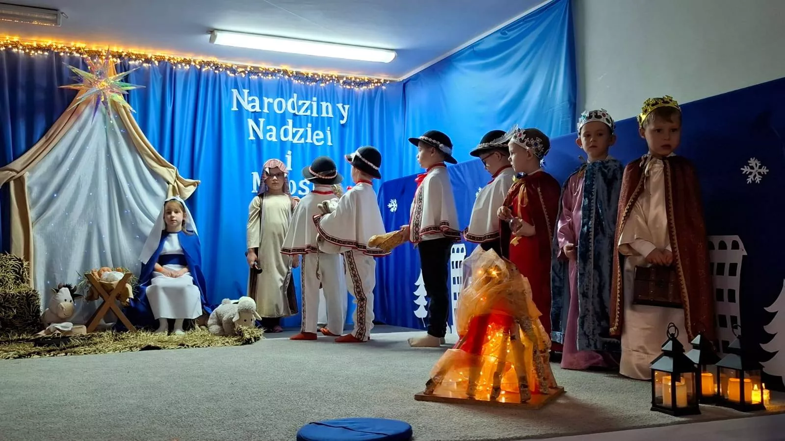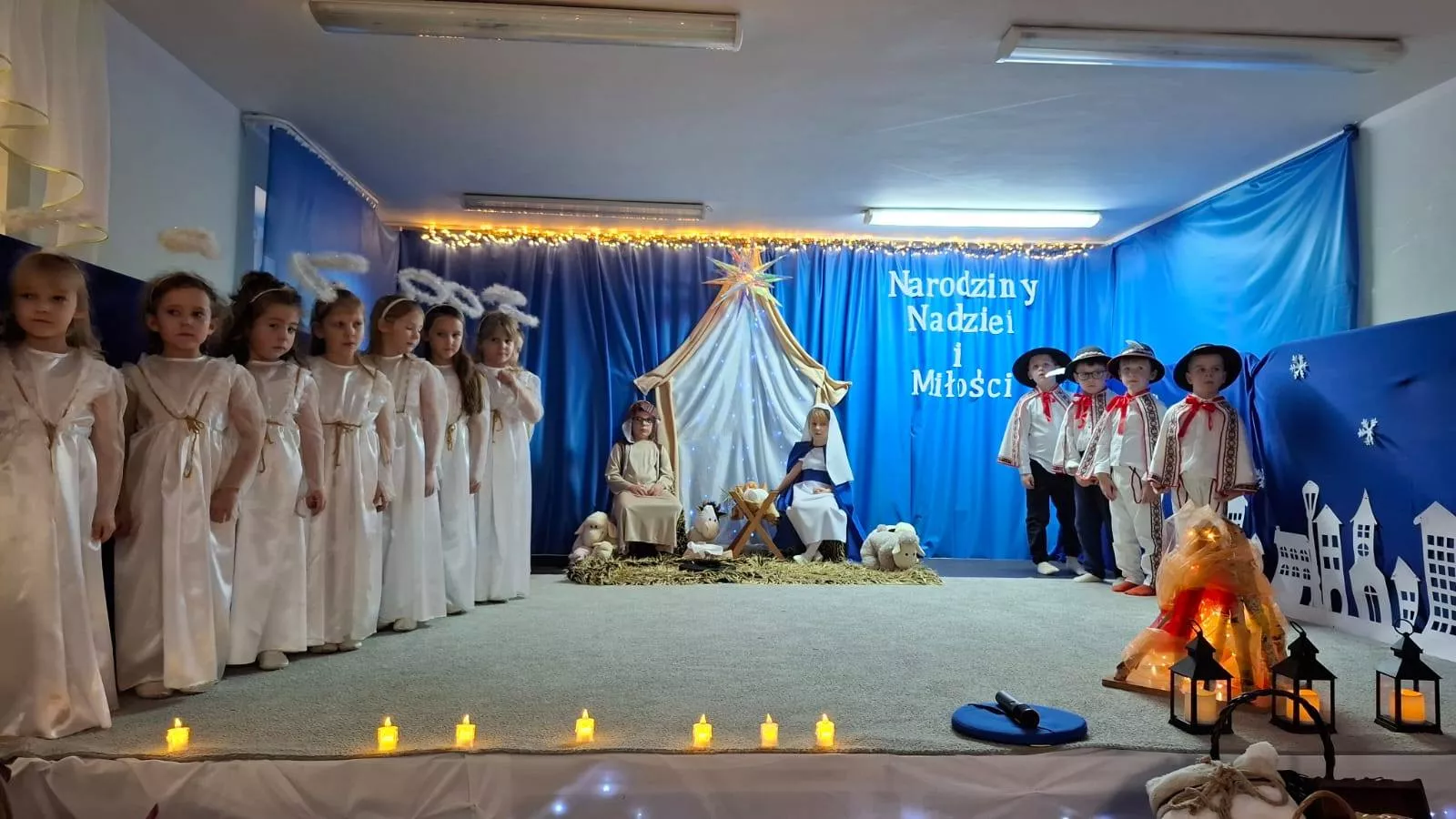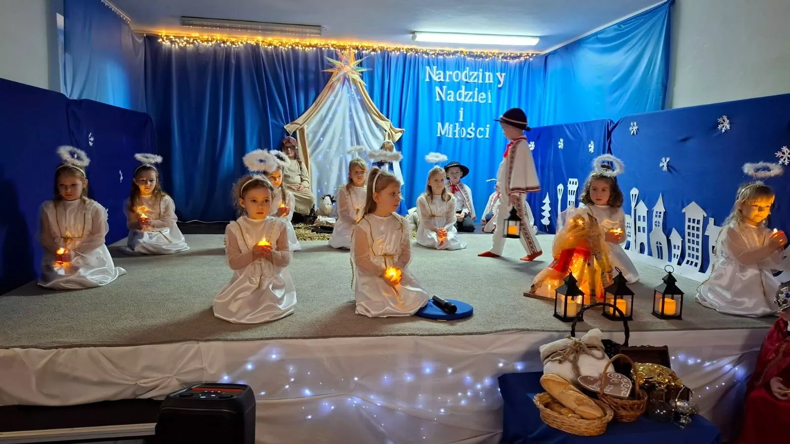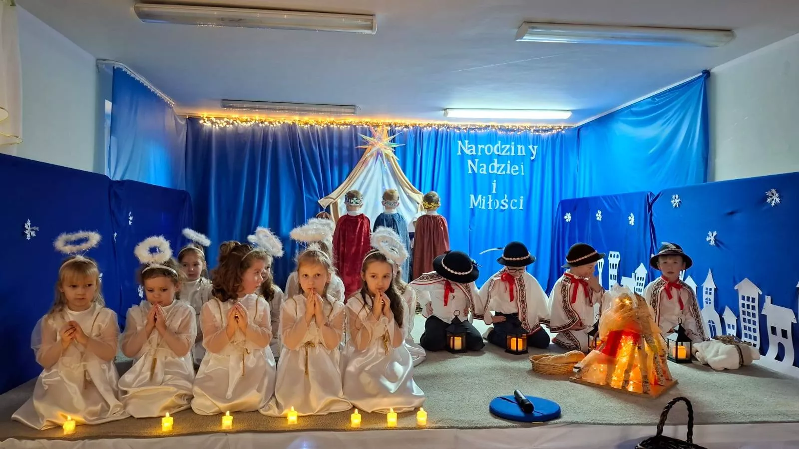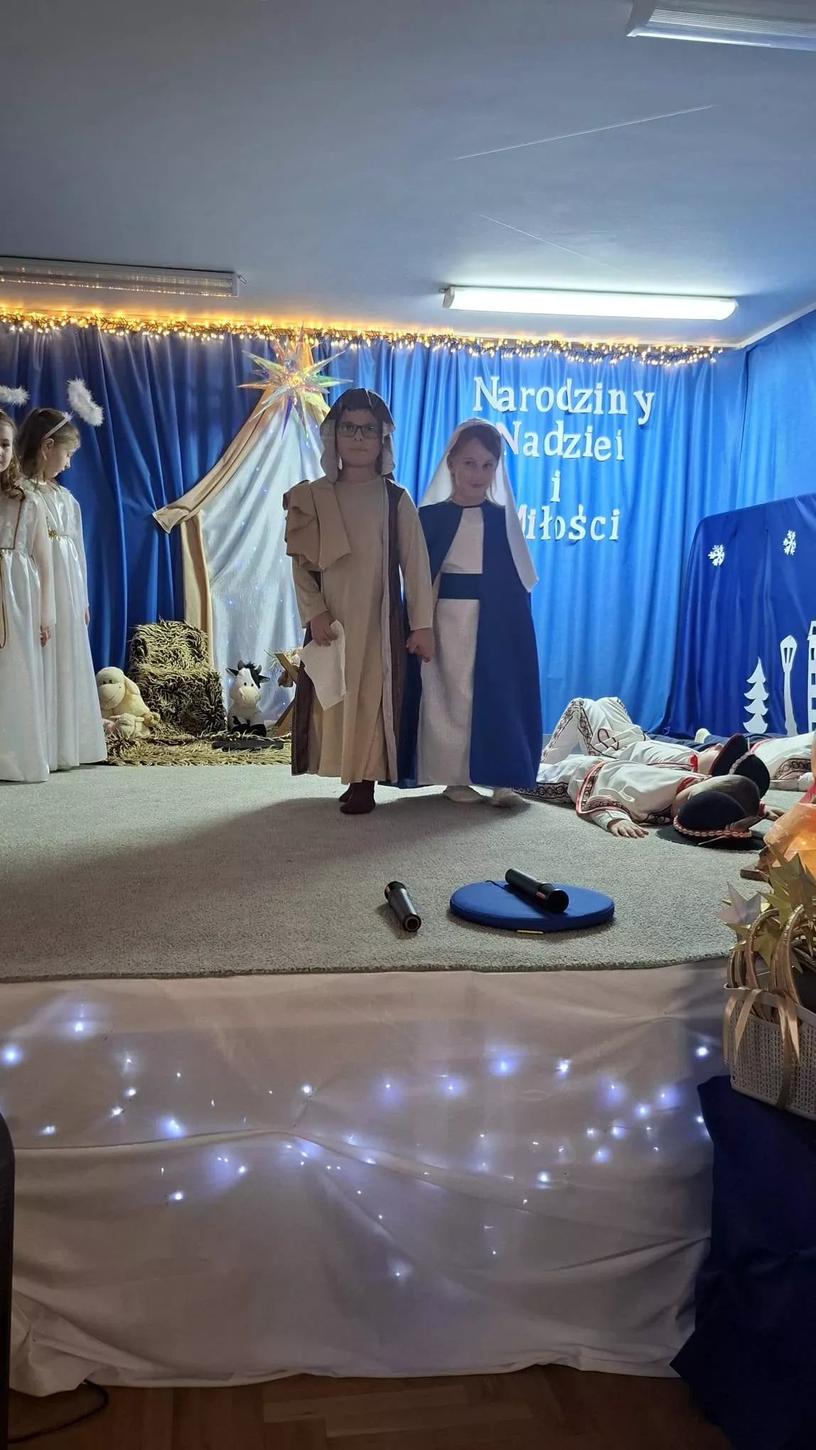 Ta uroczysta chwila była okazją do wspólnej modlitwy , wprowadzenia w radosne przeżywanie zbliżających się Świąt Bożego Narodzenia i pogłębiania chrześcijańskich wartości . Serdeczne brawa dla naszych małych artystów, którzy przygotowali te piękne przedstawienia z ogromnym zaangażowaniem!