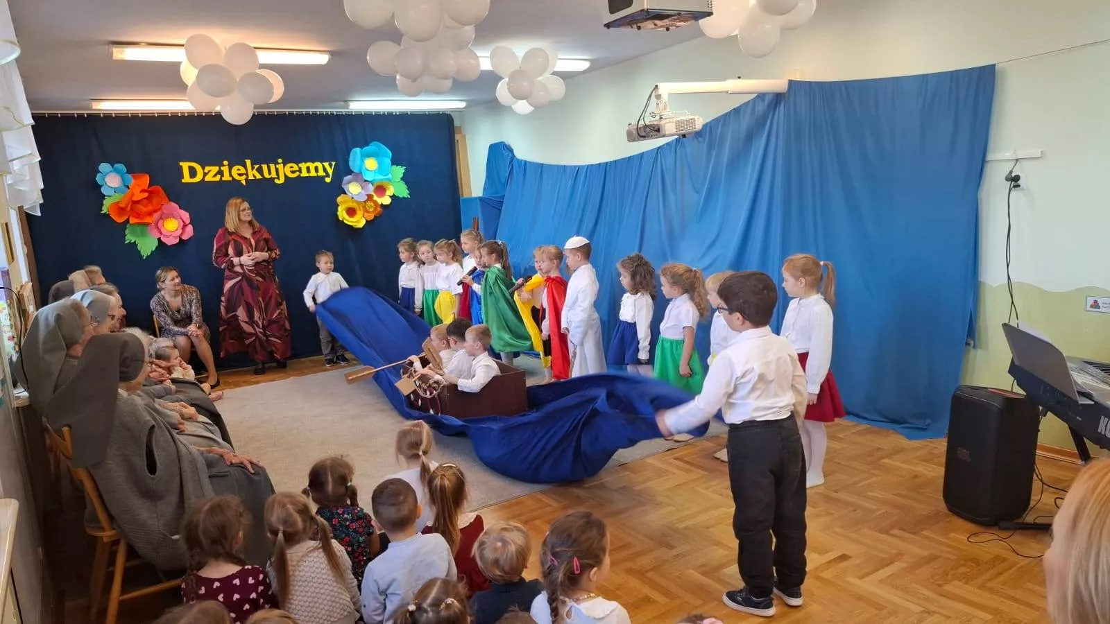 Spotkanie było doskonałą okazją, by pokazać Siostrze Małgorzacie jak i innym zebranym Siostrom jak wspaniałymi małymi CHRZEŚCIJANINAMI są Nasze PRZEDSZKOLAKI . Najstarsza grupa - Radosne Kwiatuszki zaśpiewała i zilustrowała ruchem piosenkę: ,,Pielgrzymi Nadziei", w której ukazała, że należy pokładać Nadzieję w Panu, bo ta Nadzieja może zmienić wszystko! Inscenizacja wywołała łzy wzruszenia u zebranych gości.